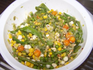 Das TK-Gemüse zu den Zwiebeln geben, evtl. noch etwas Brühe dazu (nicht zu viel, das Gemüse soll eher Schmoren als Kochen) und gut bissfest garen. Bei frischem Gemüse auf die unterschiedlichen Garzeiten der einzelnen Sorten achten und die Gemüse dementsprechend nach und nach in Pfanne oder Topf geben. Nicht das die Erbsen schon zu Brei geworden sind, während der Blumenkohl noch knackt wie frisch vom Feld :-)