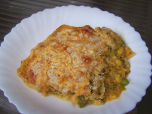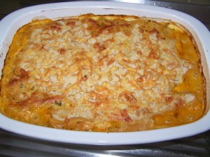 (Anmerkung von mir: Wenn man den Käse gegen eine vegane Alternative (z.B. Hefeschmelz) austauscht und Kondensmilch gegen Sojamilch, ist dieses Menü vegan)