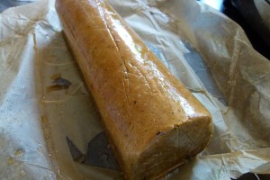 Es wurde zwar nicht so schön dünn und gleichmäßig, aber dennoch als Seitan-Aufschnitt absolut zu gebrauchen und tooootal lecker! :-)