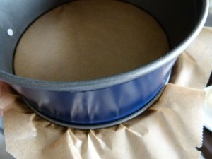 Backofen auf 175°C vorheizen, kleine Springform unten mit Backpapier auslegen (ich klemm das immer so ein und schneide es rundherum ab)