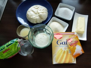 Jetzt geht’s ans Käsekuchen machen. :-) Das ist alles, was Du dazu brauchst: